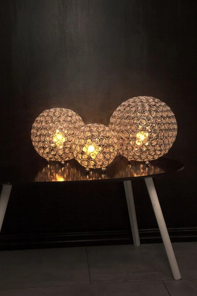 Bordslampa i metall med krom utförande. Kristaller i plast.
