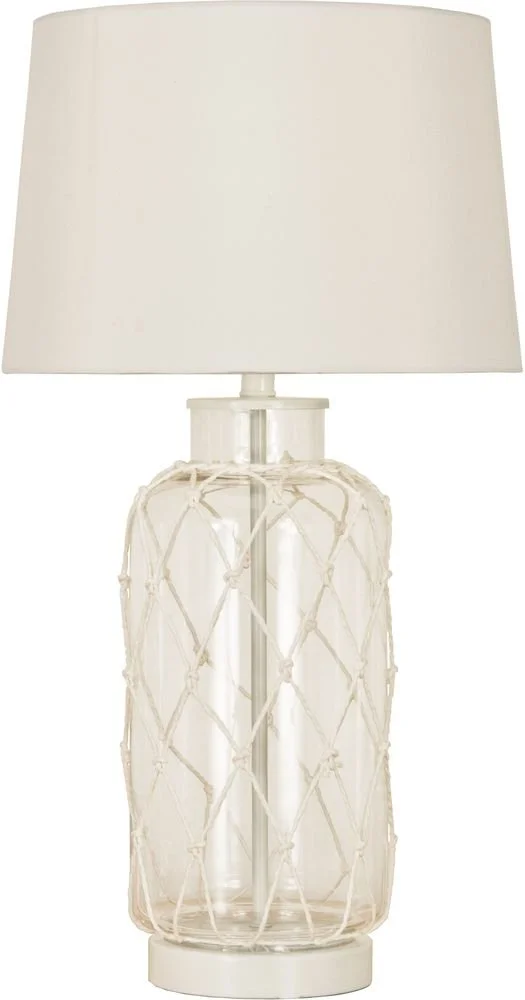 Bordslampa i glas med klart utförande. Lampskärm i textil ingår.