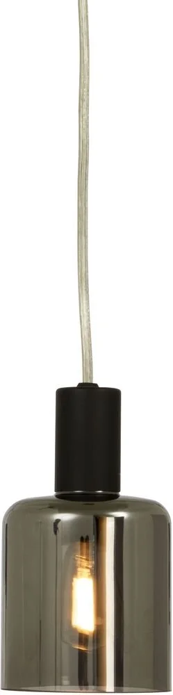 Fönsterlampa i metall med svart utförande och glasskärm i rökgrått. Lätt upphängning med krok.