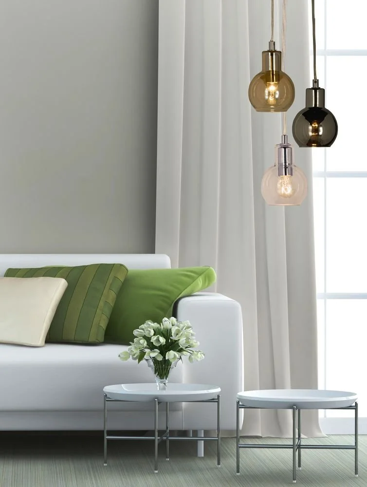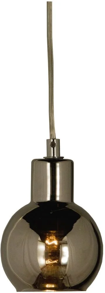 Fönsterlampa i metall med krom utförande med glasskärm i rökgrått. Lätt upphängning med krok.
