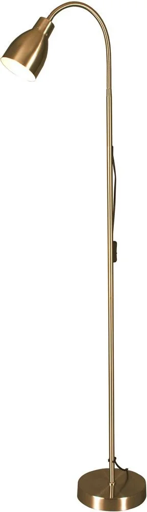 Golvlampa i metall med antik mässings utförande och justerbar lamphals.