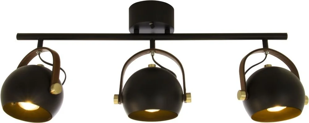 Taklampa i svart metall med detaljer i konstläder. Lätt upphängning i tak.
