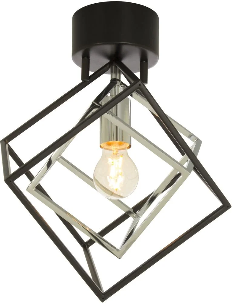 Taklampa i svart och kromad metall. Monteras lätt i taket.