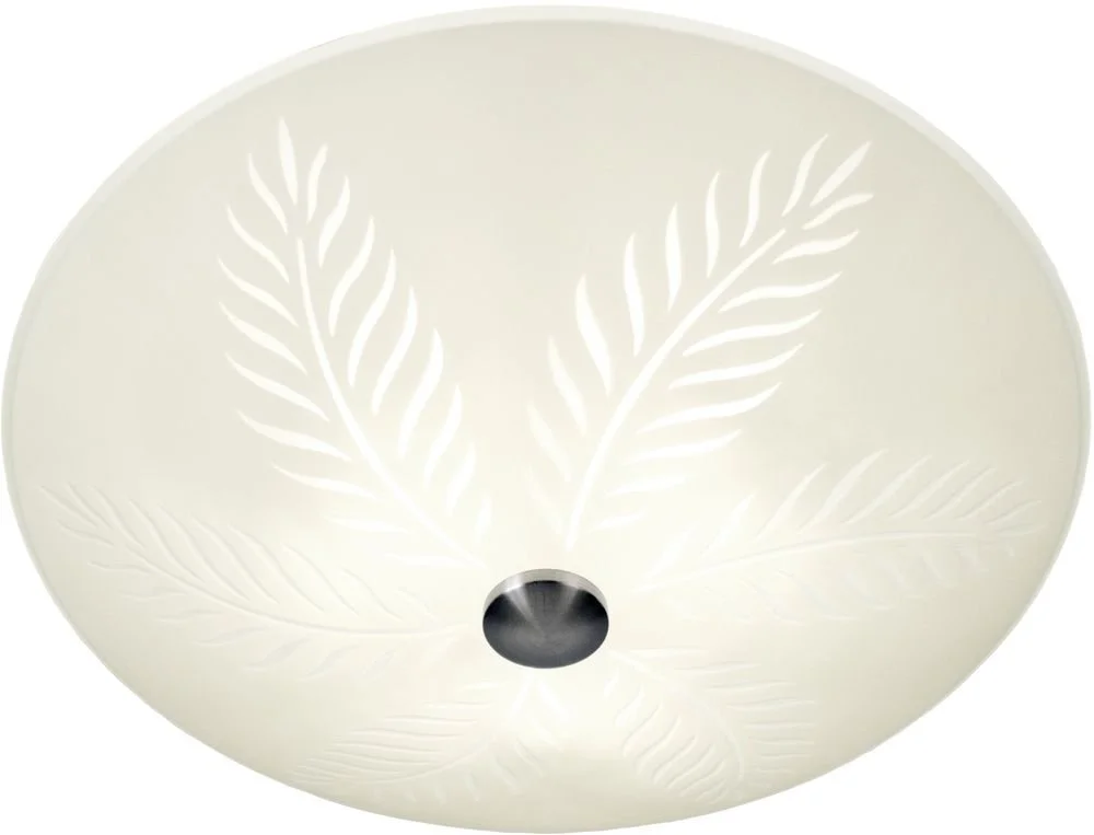Taklampa i metall och vitt glas med mönster. Monteras lätt i taket.