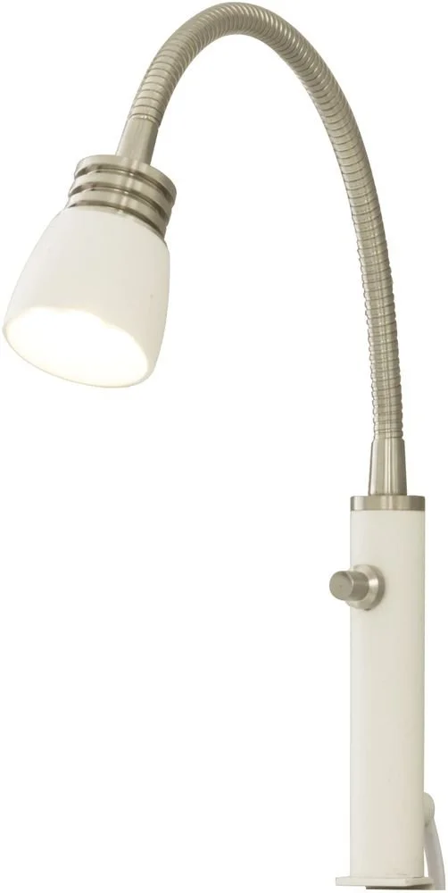 Vägglampa i vitt och stål utförande. Monteras lätt fast på väggen.