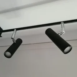 Spotlight i svart och stålfärgad metall. Lätt att montera i taket.