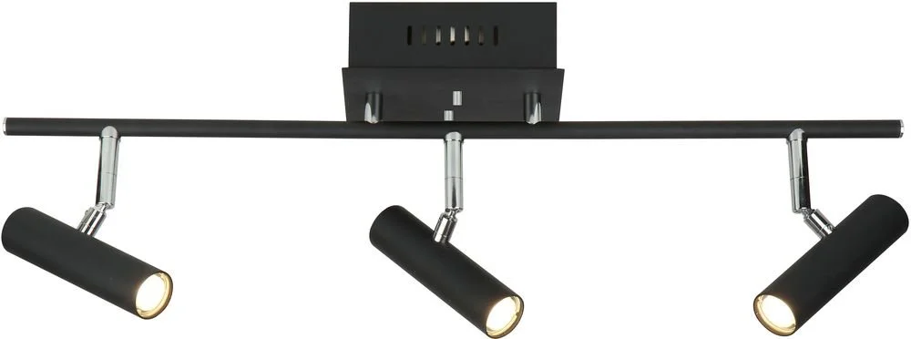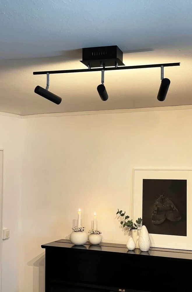 Spotlight i svart och stålfärgad metall. Lätt att montera i taket.