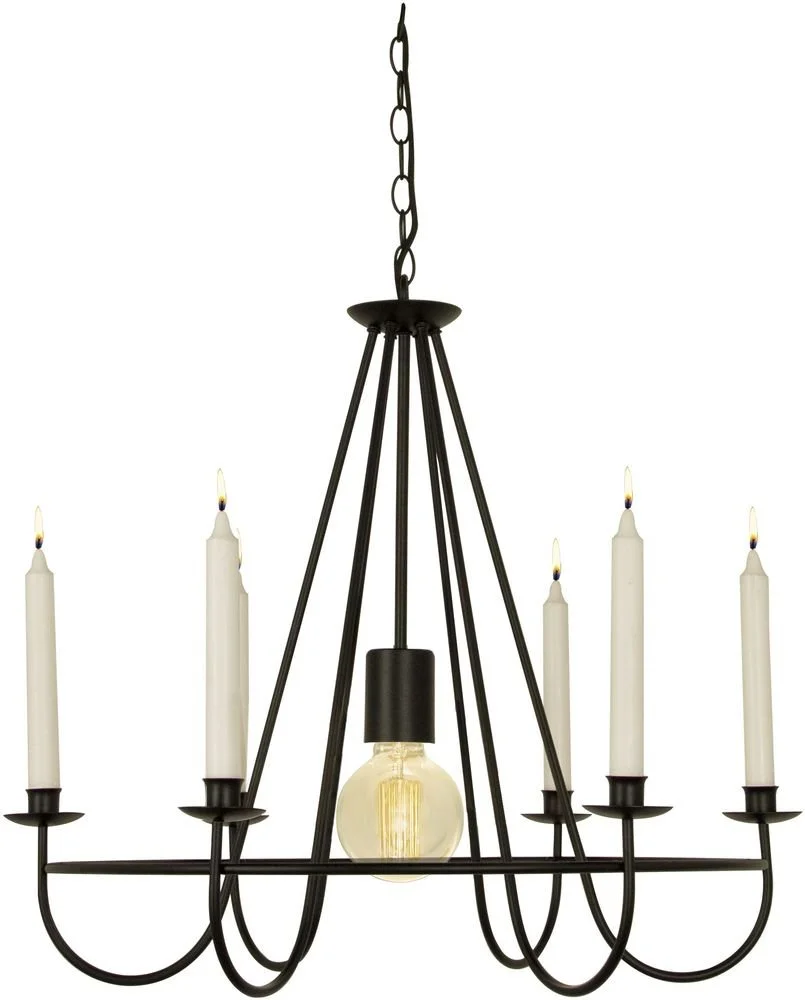 Takkrona i svart metall med hållare för stearin ljus. Lätt upphängning i tak.