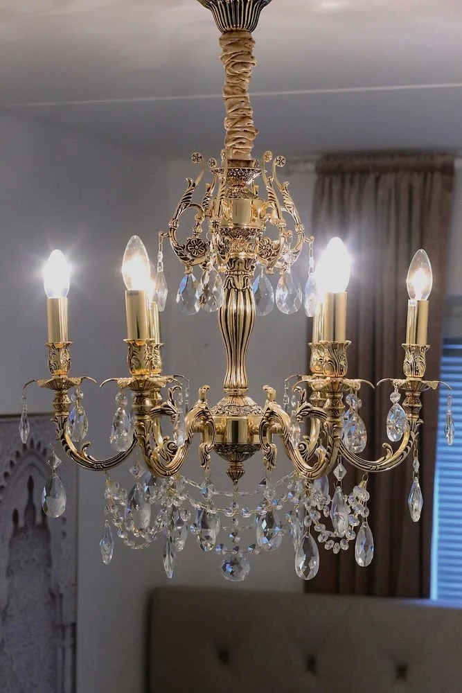 Takkrona i metall med antik mässings utförande. Enkel att hänga på plats i taket.