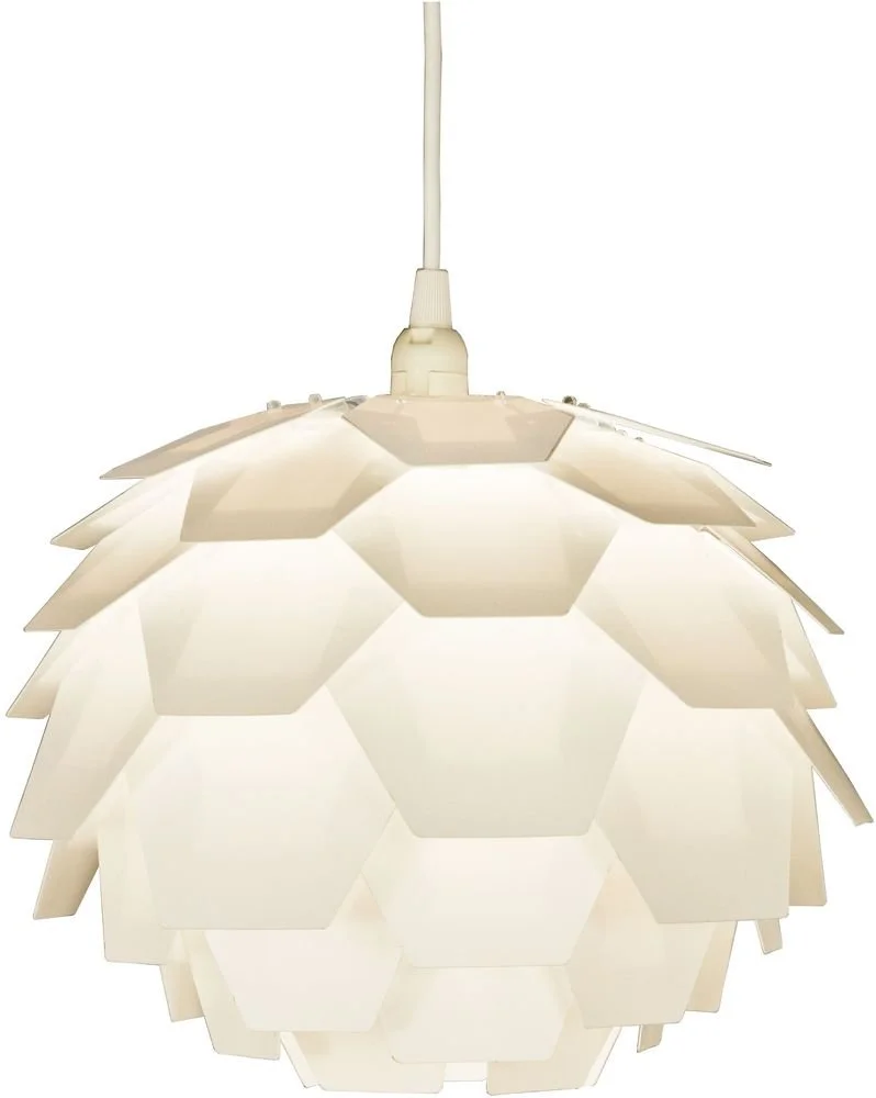 Taklampa i vit plast. Lätt upphängning i taket.
