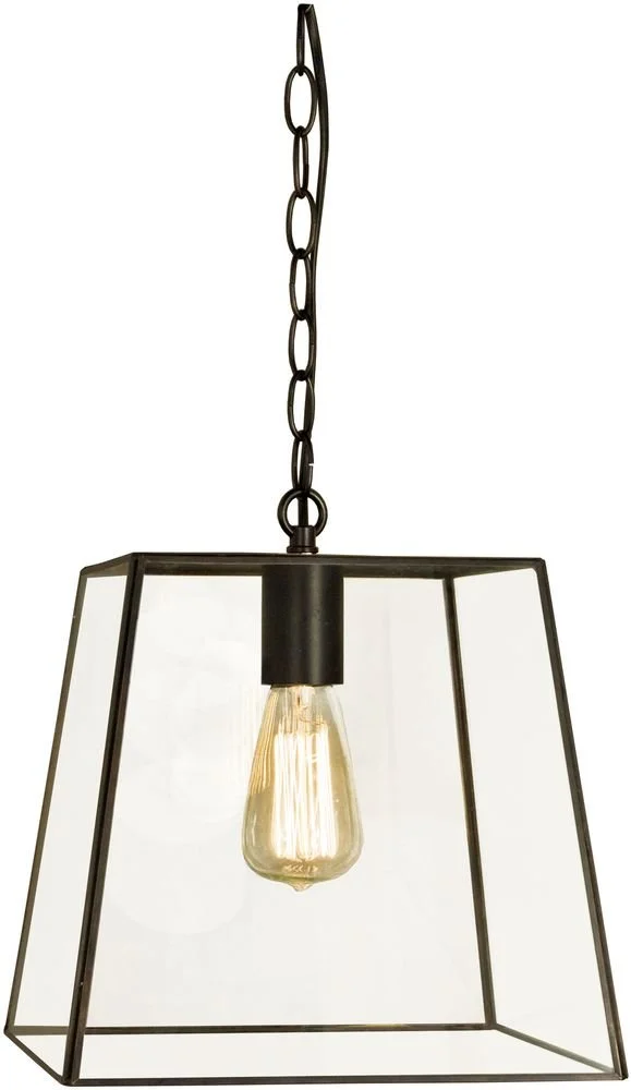 Taklampa i svart metall och klarglas. Hängs lätt upp i taket.