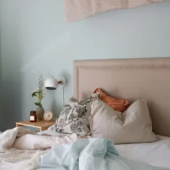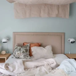 Vägglampa med vitt och brunt läder utförande. Monteras lätt på väggen.