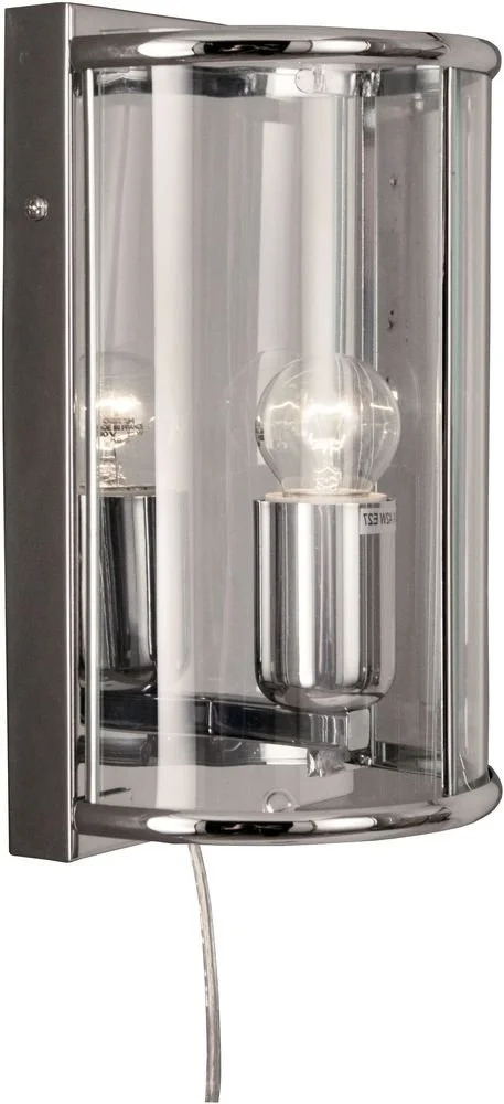 Vägglampa i krom utförande. Monteras lätt på väggen.