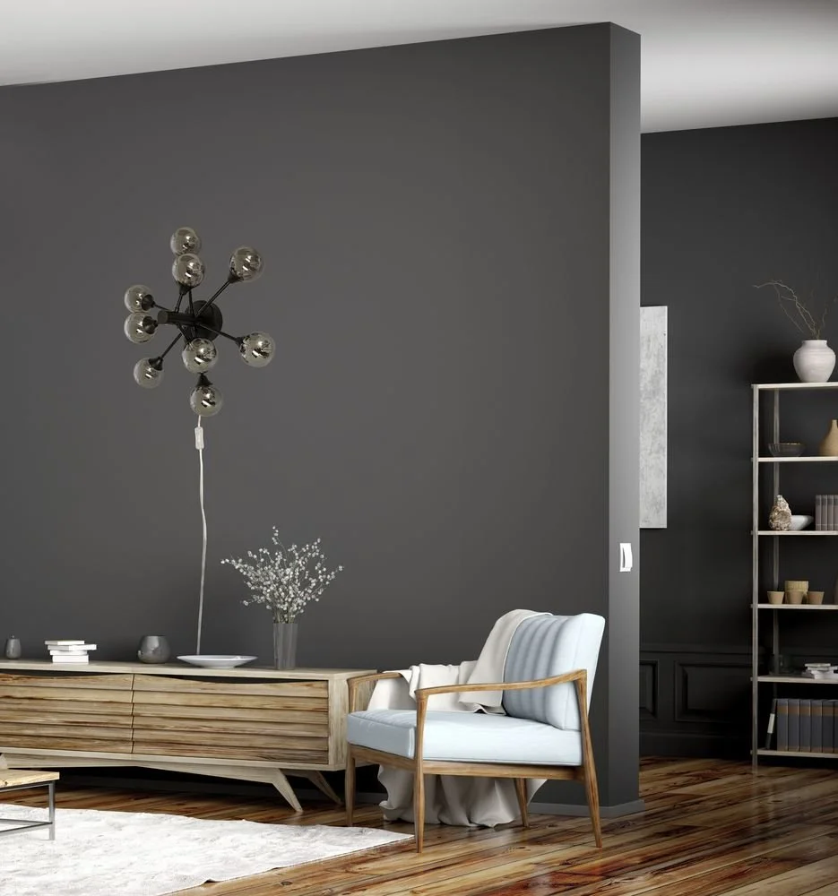 Vägglampa med en modern design, svart utförande. Monteras lätt på väggen.