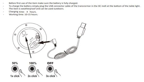 - Laddningstid: 4 h ger 10-15 h brinntid
