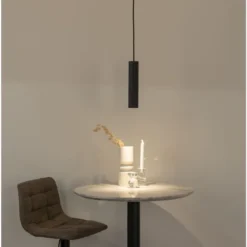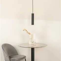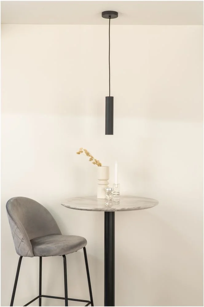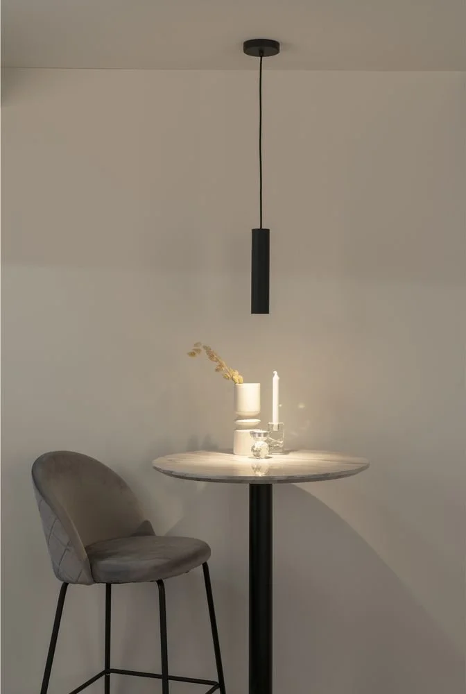 Svart pendellampa med tygsladd.