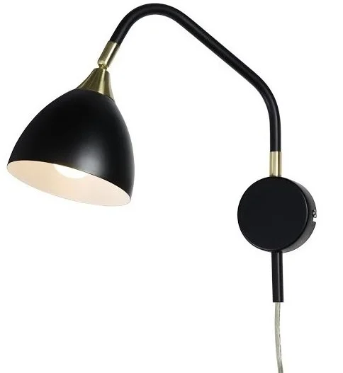 Läza vägglampa i svart metall med mässingsdetaljer. Stilren och snygg vägglampa! Lampans arm är svängbar och lamphuvudet går att justera till valfritt läge!