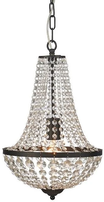 Gränsö kristallkrona med en elegant design. Tillverkad i svart metall och vackra klara prismor. 1,5 meter kedja och krok upphängning. Stor sockel (E27) för max 1x60W glödljus eller motsvarande i halogen, lågenergi eller LED. Lampan monteras lätt på plats och passar perfekt in på flera olika platser i hushållet.