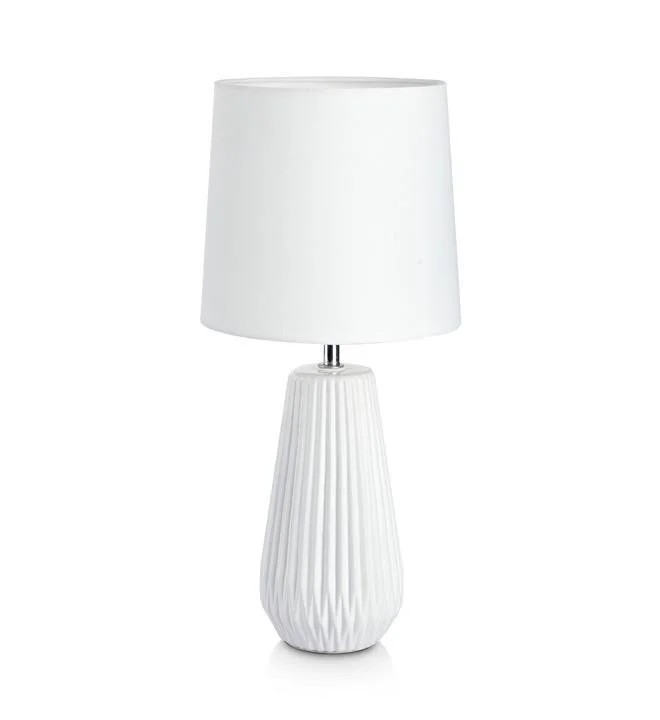 Nicci bordslampa med en stilren design. Foten är tillverkad i vit keramik och skärmen är i vit textil. 1,5 meter textilsladd med strömbrytare på sladden. Liten lamphållare (E14). Max 40W glödlampa eller motsvarande styrka i halogen, lågenergi eller LED.