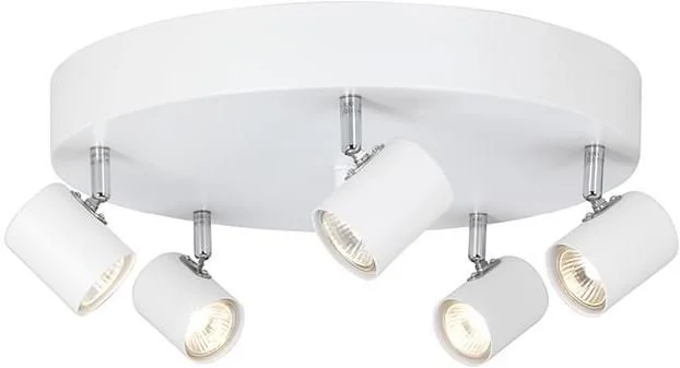 En snygg spotlight med en modern design. Tillverkad i vit metall med detaljer i krom. Reglerbara armar för att lätt kunna rikta ljuset mot önskad riktning.