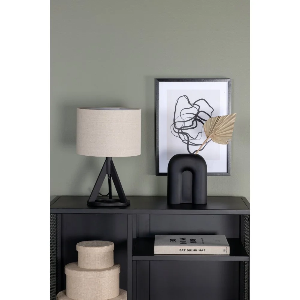 Bordslampa av pvc, gummiträ och linne.
