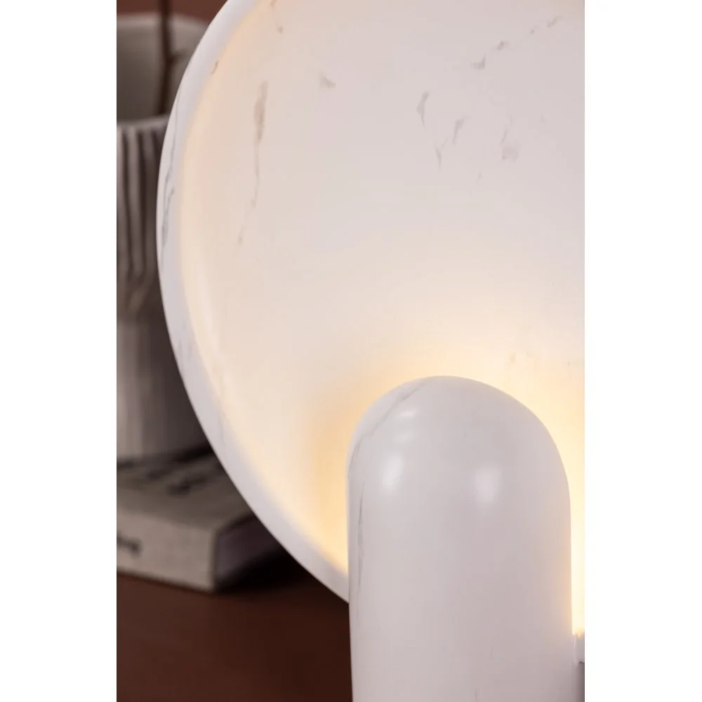 Bordslampa med unik utformning och marmorliknande utseende. Lampan har rundade former och är tillverkad i materialet resin och har ett genomgående mönster i vitt och grått. Placera lampan på en synlig plats så blir den en viktigt del av inredningen en lång tid framöver.