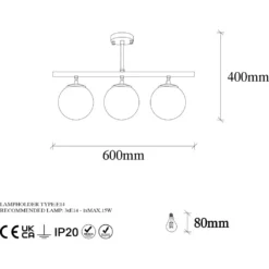 - Sockel: 3 x E27 – Max 15 W