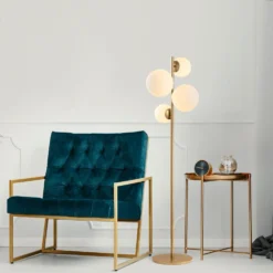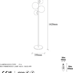 Golvlampa av metall och glas. Ljuskälla ingår ej.