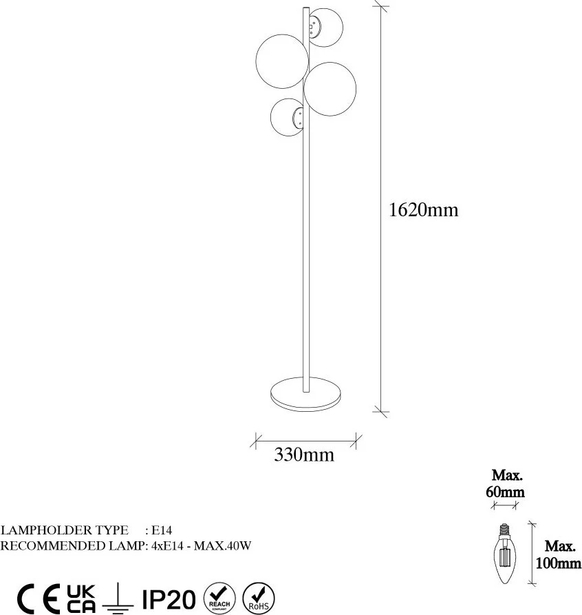- Sockel: 4 x E14 – Max 40 W