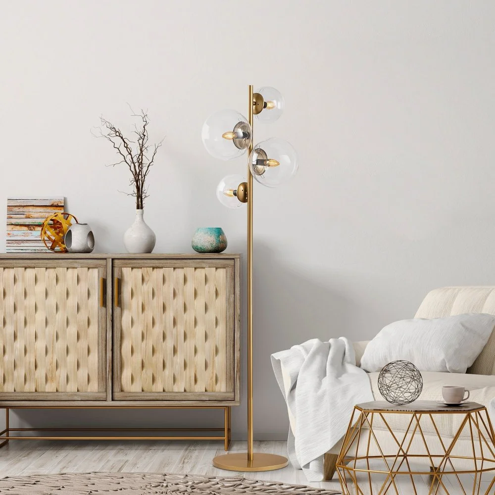 Golvlampa av metall och glas. Ljuskälla ingår ej.