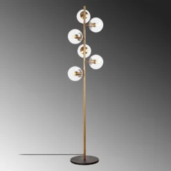 Golvlampa av metall och glas. Ljuskälla ingår ej.