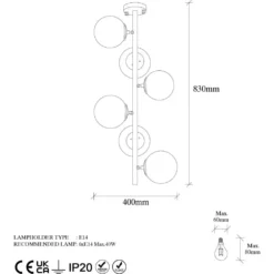 - Sockel: 6 x E14 – Max 40 W