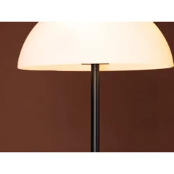 Klassisk golvlampa i nordisk design med en stilren lampfot i svart järn och en vit lampskärm i glas. Den här lampan passar i alla hem och inredningsstilar och kan placeras i nästan vilket rum som helst. Lampan ger ifrån sig ett vackert sken som ljusar upp hemmet och skapar en mysig och harmonisk känsla. Ljus upp ett mörkt hörn i vardagsrummet eller varför inte placera den vid läshörnan.