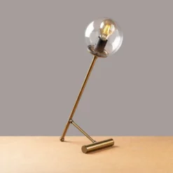 Bordslampa av metall och glas. Ljuskälla ingår ej.