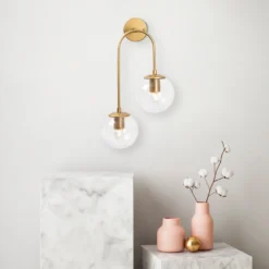Vägglampa av metall och glas. Ljuskälla ingår ej.