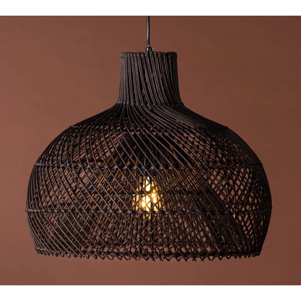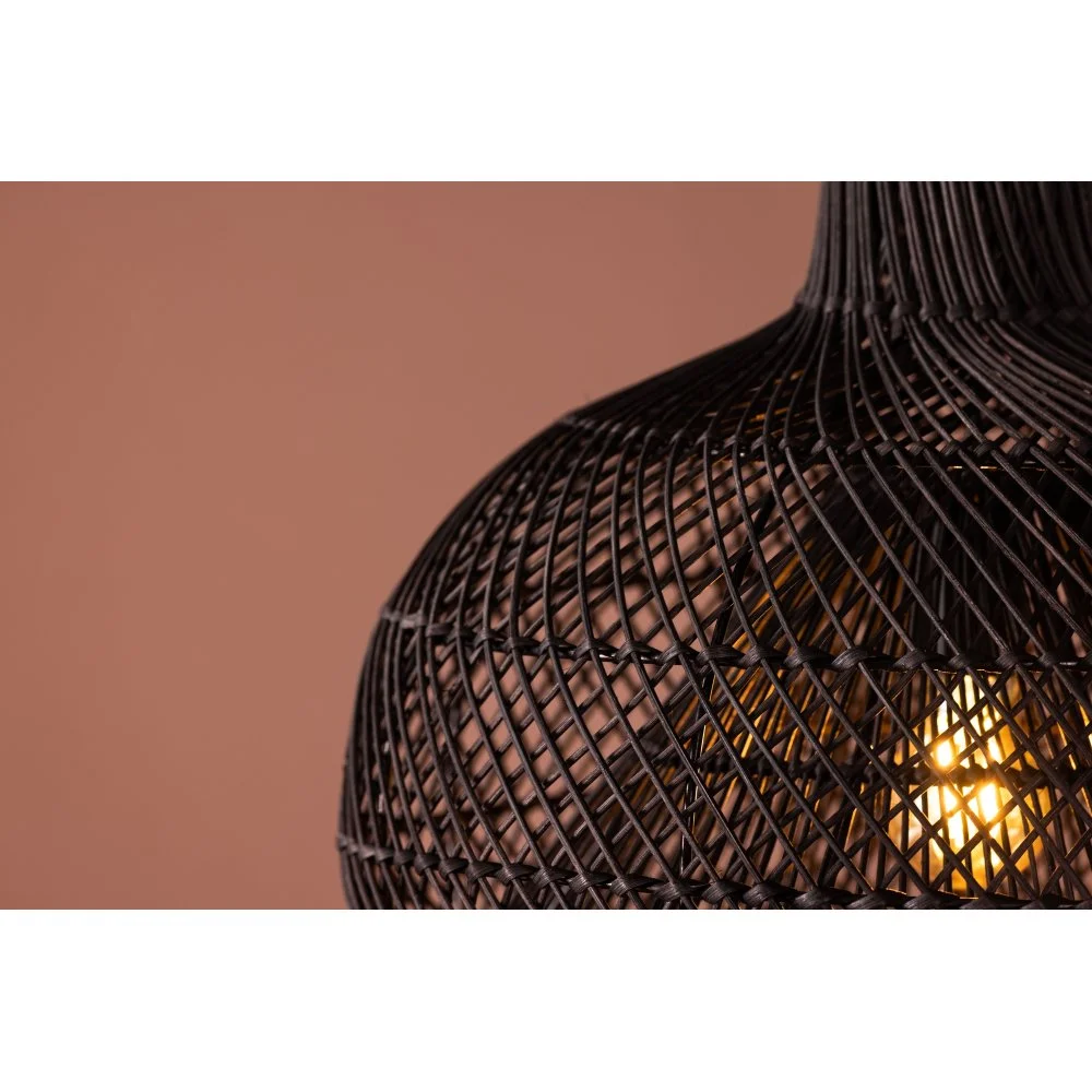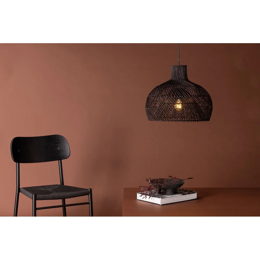 Taklampa som skapar en modern och lyxig känsla i rummet. Lampskärmen är rundad och består utav svart rotting i ett fint mönster. Den generösa storleken gör att lampan passar perfekt över matbordet eller i vardagsrummet. Med denna taklampa får du ett vackert sken som skapar en stämningsfull och hemtrevlig atmosfär i rummet.