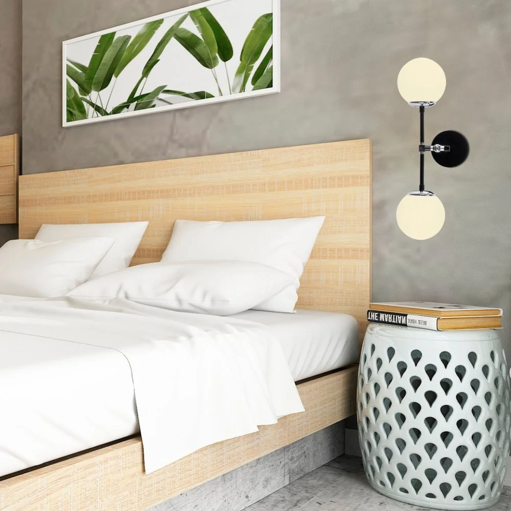 Vägglampa av metall och glas. Ljuskälla ingår ej.