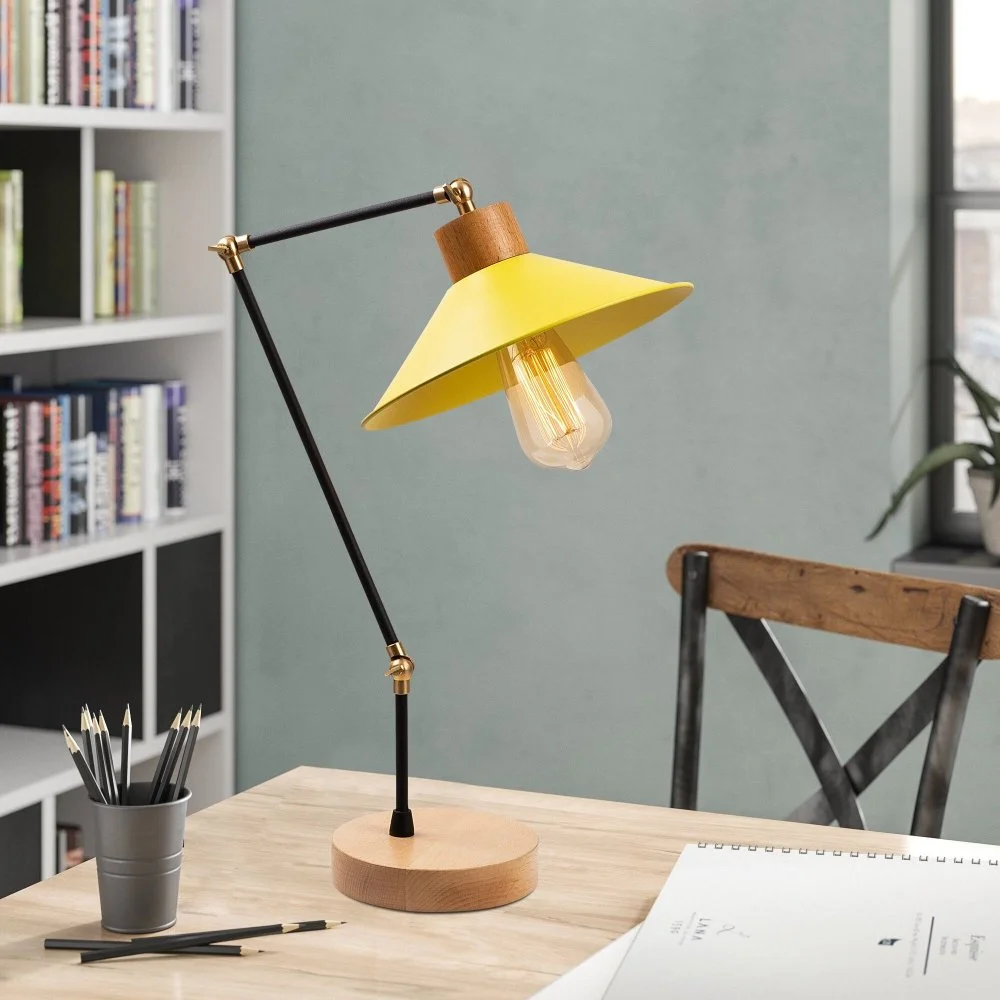 Bordslampa av järn och trä. Ljuskälla ingår ej.