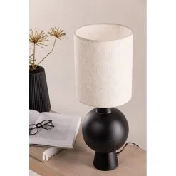Lampa med en fot i svart betong som kombineras perfekt med lampskärmen i ett trendigt beiget linnetyg. Den genomtänkta designen och mjuka formerna gör att den här lampan skapar ett vackert blickfång och ett varmt uttryck. Placera lampan på sängbordet eller i fönstret och njut av ett behagligt sken samtidigt som det blir en unik inredningsdetalj.