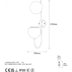 Vägglampa av metall och glas. Ljuskälla ingår ej.