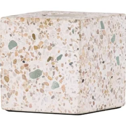Enkel bordslampa helt i linje med trenderna. Lampan har en nordisk design med ett kubformat underrede i terrazzo. Med sin jordnära bas i grått med inslag av beige och brunt skapar lampan ett varmt och lugnt intryck till rummet. Den stilrena designen gör att lampan passar i de flesta hem och inredningsstilar. Placera på byrån i hallen eller använd som fönsterlampa och du får en vacker inredningsdetalj på köpet.