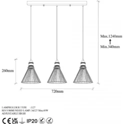 - Sockel: 3 x E27 – Max 40 W