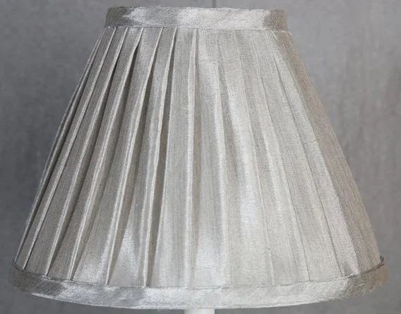 Siden lampskärm i grå veckad sidenliknande tyg. Passar E14 fattning.