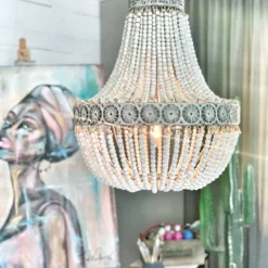Signum taklampa är en elegant och pampig takkrona med handträdda träkulor på rep som ger en härlig vintagekänsla. Lampan ger en härlig belysning.