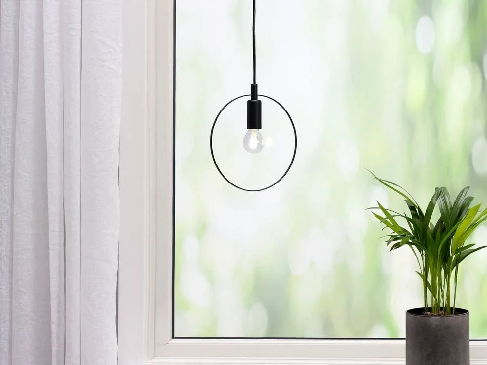 En häftig fönsterlampa med en modern design. Tillverkad helt i svart metall.