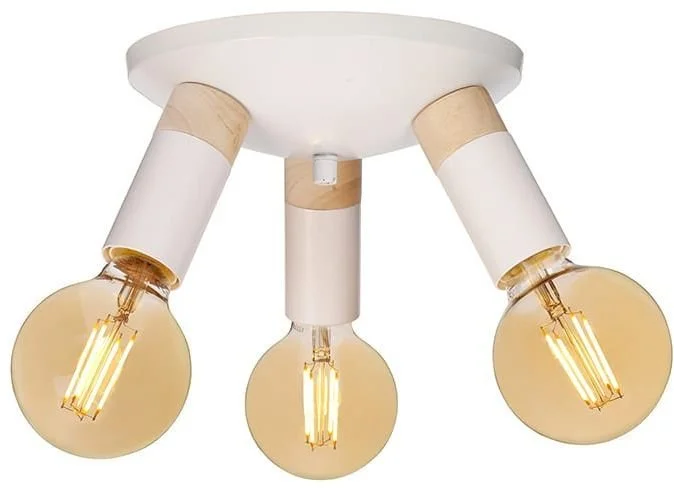En stilren taklampa med en modern känsla. Tillverkad i vit metall med detaljer i riktigt trä.