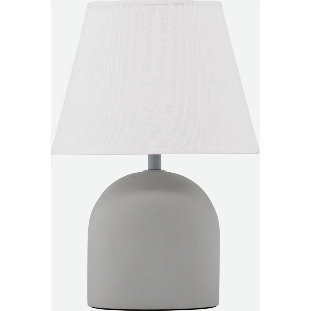 Bordslampan med ett rundat underrede i grå betong och lampskärm i vitt linne. Denna lampa passar perfekt att placera på en bänk som inredningsdetalj eller för att lysa upp rummet. Den stilrena designen gör att lampan enkelt matchar annan inredning i rummet och ger ett hemtrevligt intryck till rummet. Lampskärmen dämpar ljuset något vilket ger ett behagligt sken för filmkvällen eller middagen med familjen.