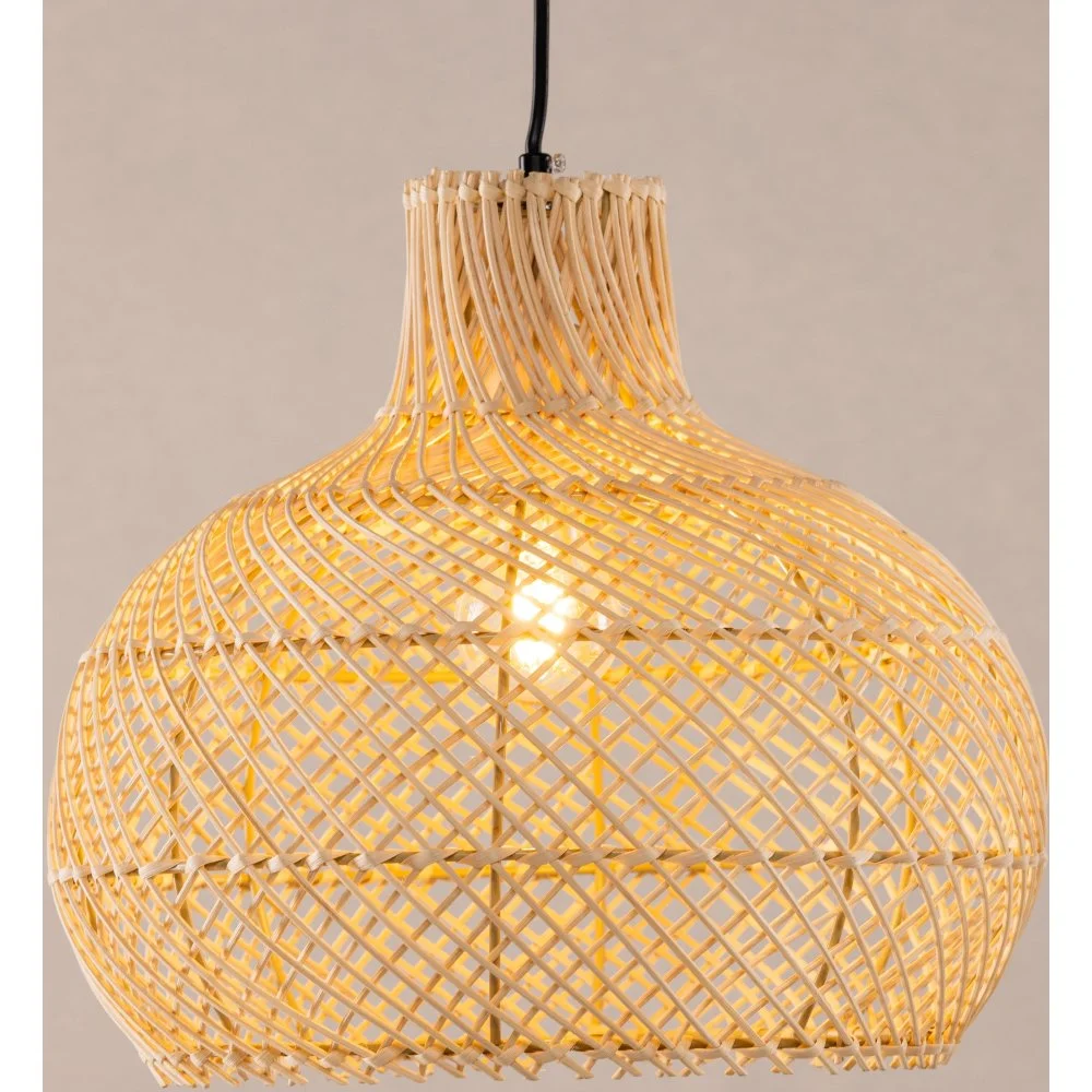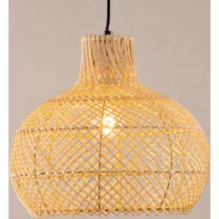 Modern taklampa som är helt i linje med trenderna. Lampan är i det populära materialet rotting och har en vacker naturfärg. Den rundade formen och eleganta mönstret gör denna lampa till, inte bara en praktisk ljuskälla, utan en vacker inredningsdetalj som drar blickarna till sig. Lampan passar perfekt över matbordet eller i vardagsrummet för ett lugnt och harmoniskt intryck.