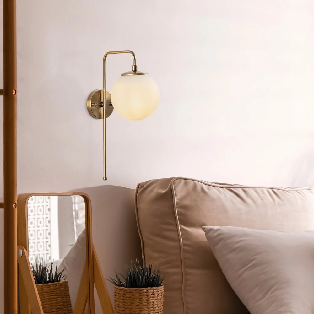 Vägglampa av metall och glas. Ljuskälla ingår ej.