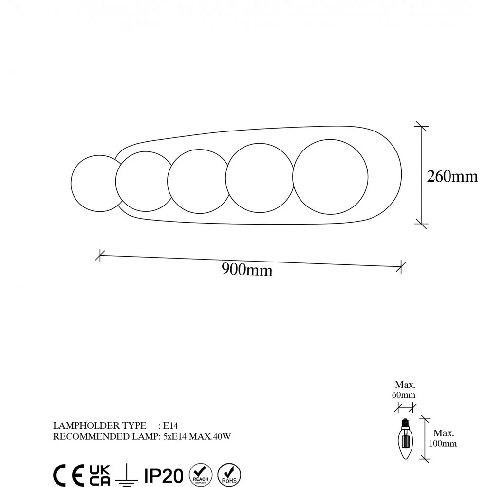 - Max storlek, glödlampa: Bredd: 6 cm, Längd: 10 cm